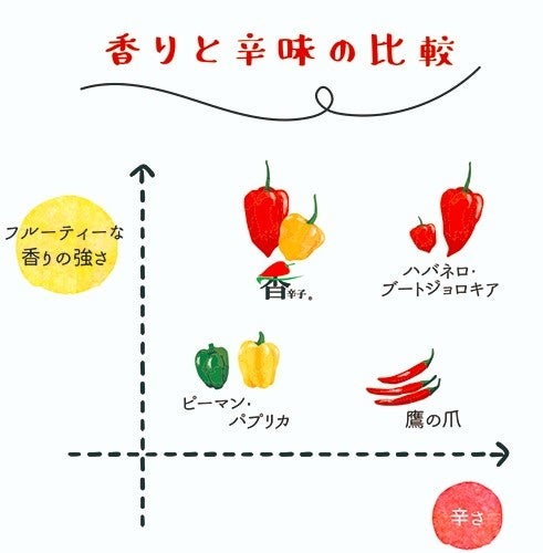 燃焼力の高いハバネロやブートジョロキアから生まれた香りがフルーティーで辛みが少ない”かわさき生まれの燃焼系やさい”です。トウガラシに含まれる辛み成分カプサイシンの代わりにカプシエイトを含むので辛みが1000分の1に抑えられた、そのまま食べられる香り高いトウガラシ。辛さは控えめですがトウガラシ同等の脂肪燃焼作用があると言われています。
