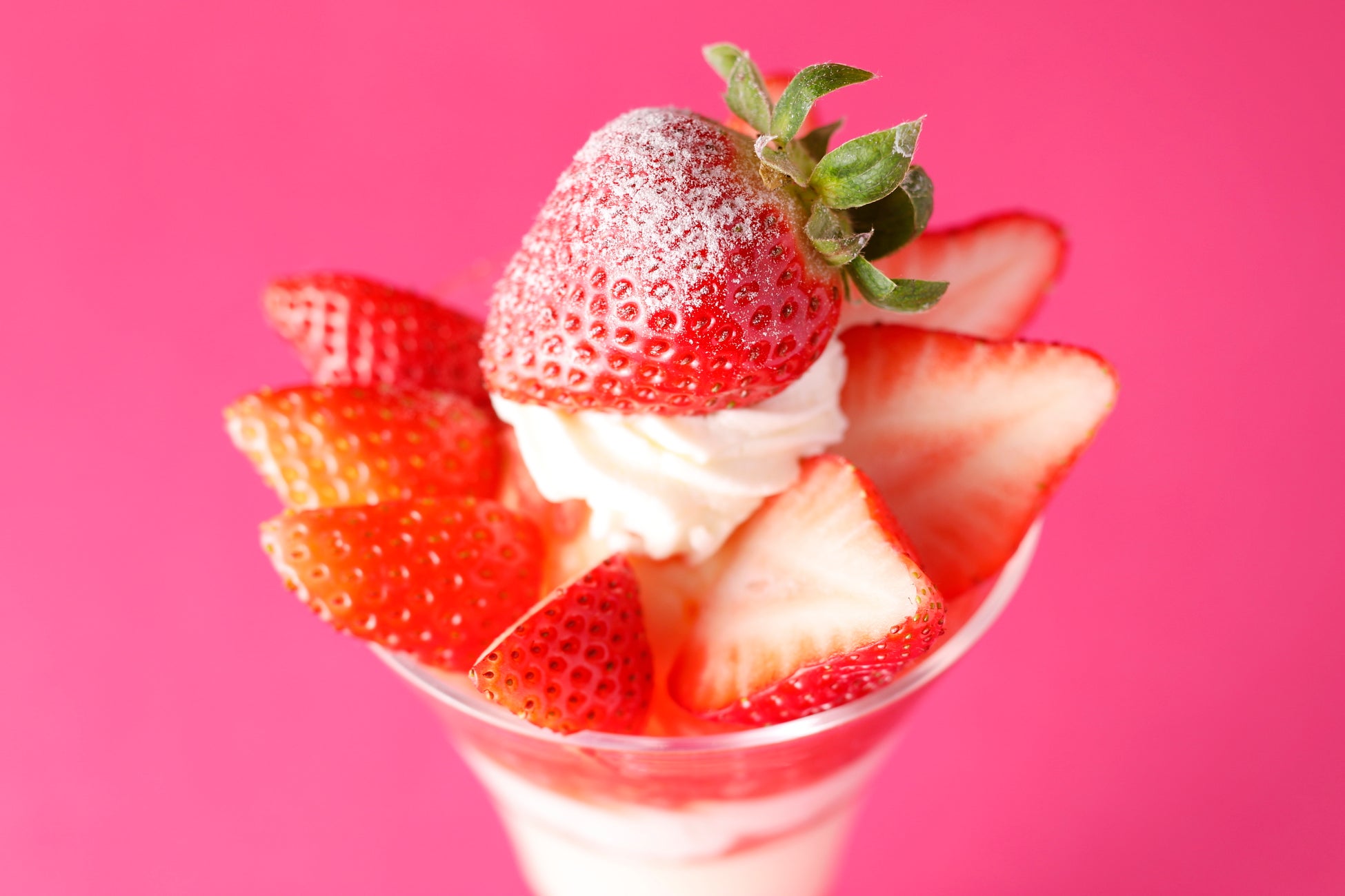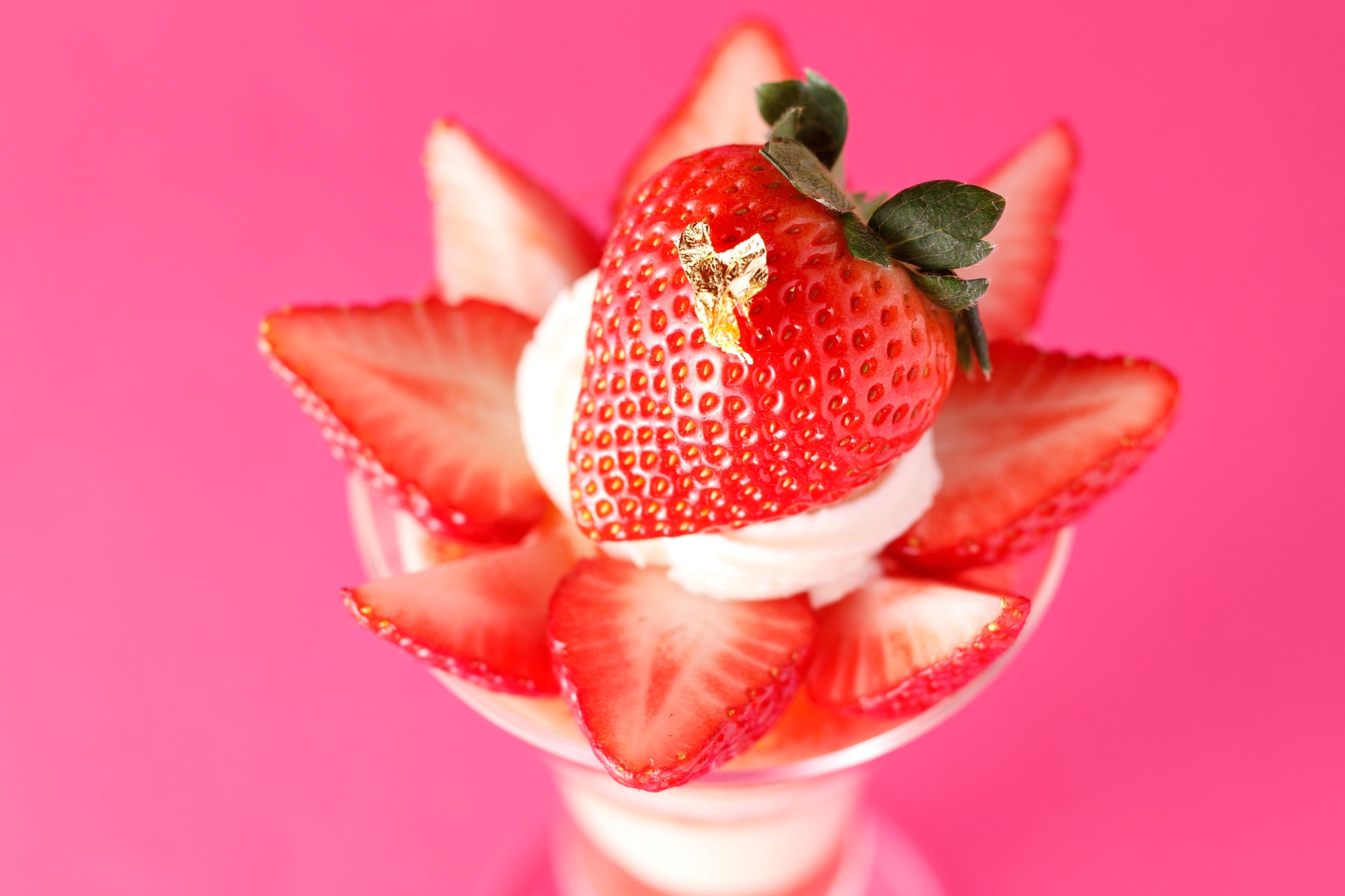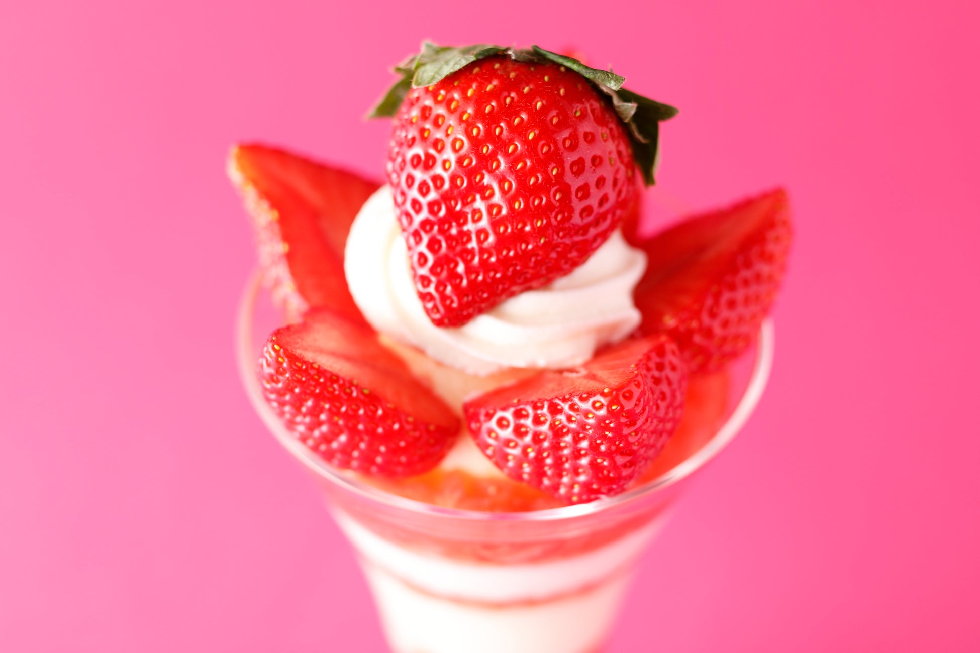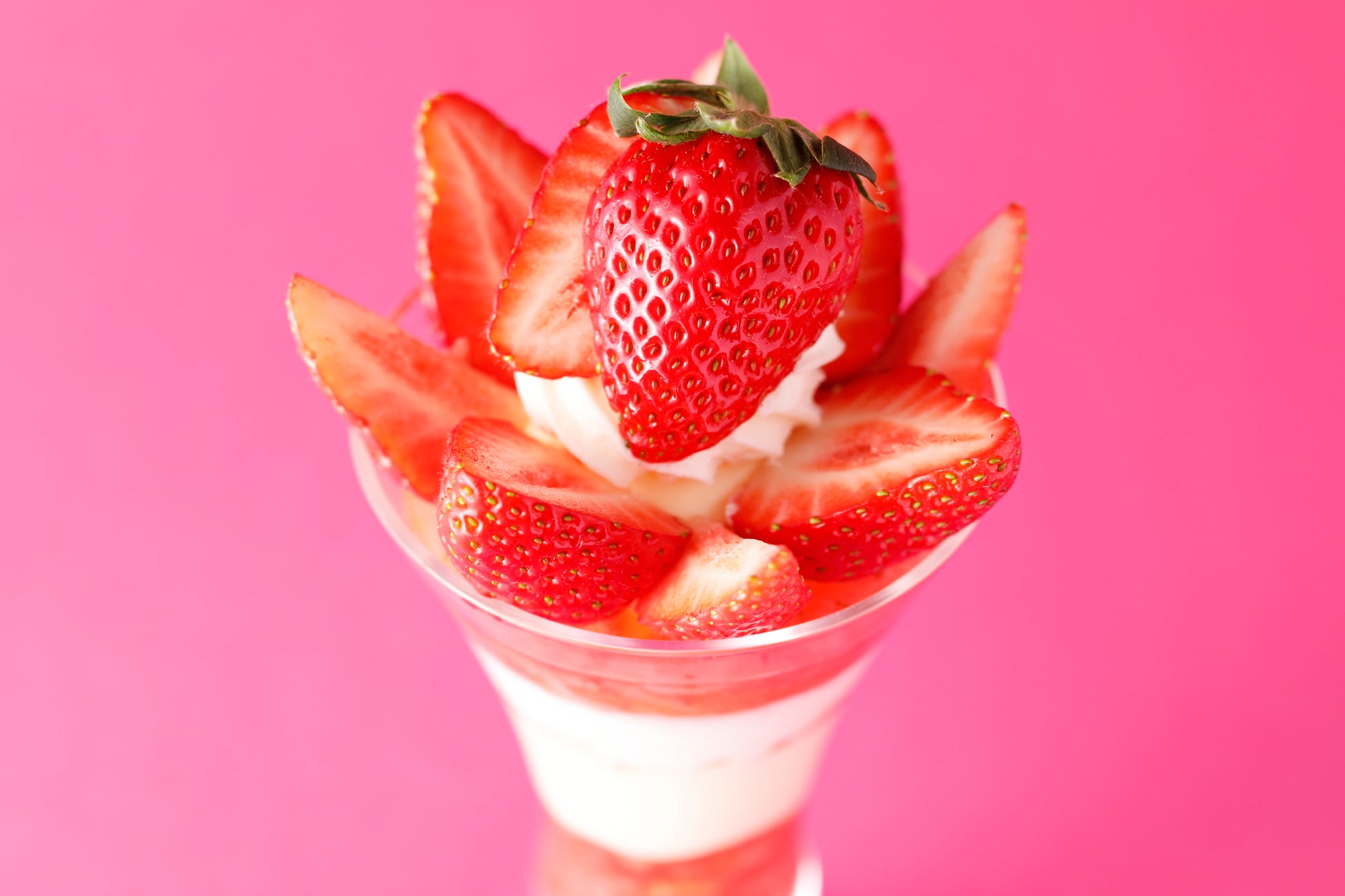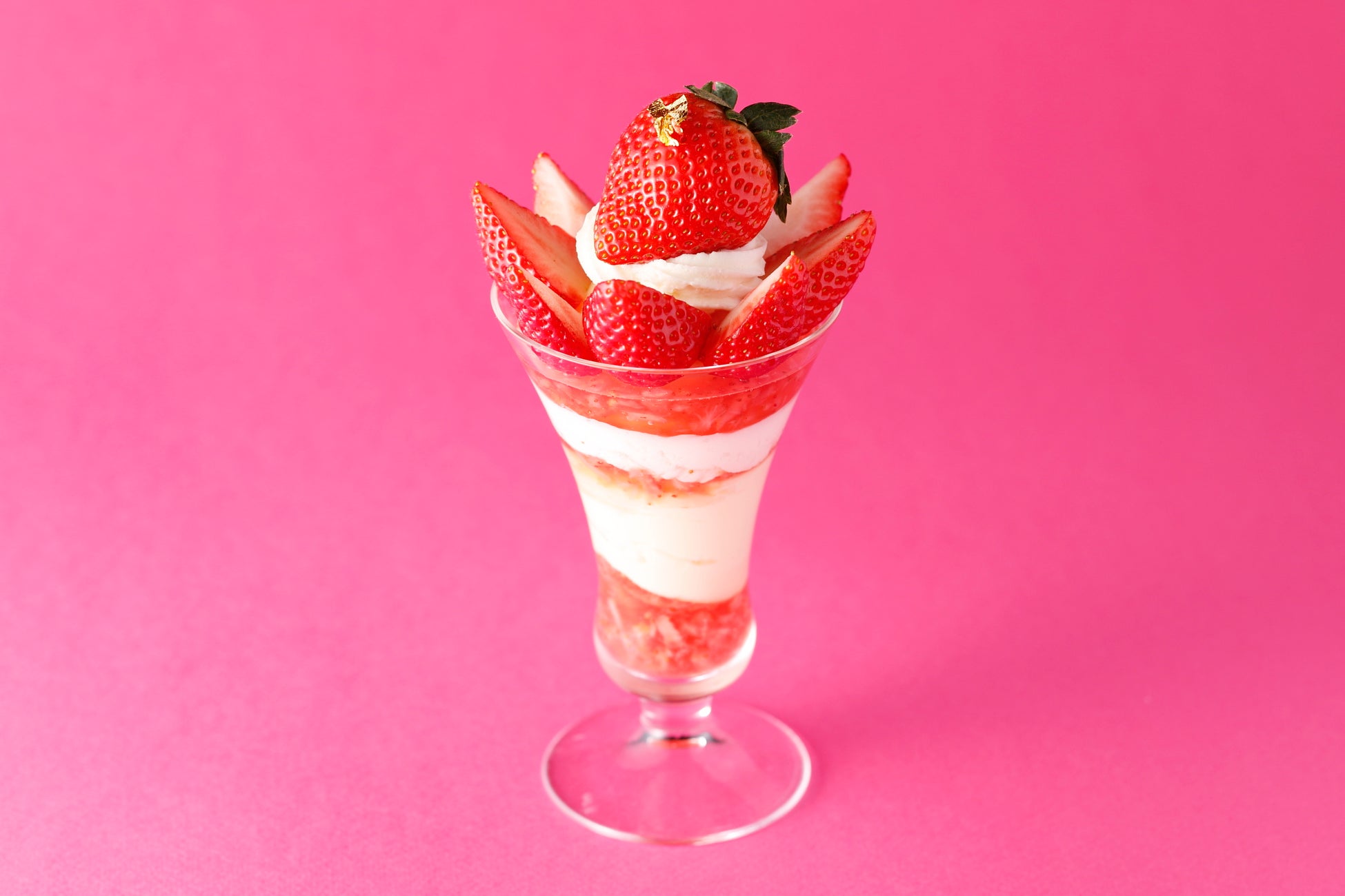 福岡県産の苺“あまおう”で作ったパフェです。その中でも、大粒のグランデ規格のみを使用しています。