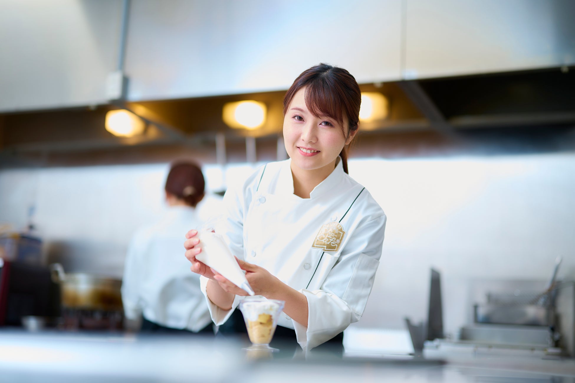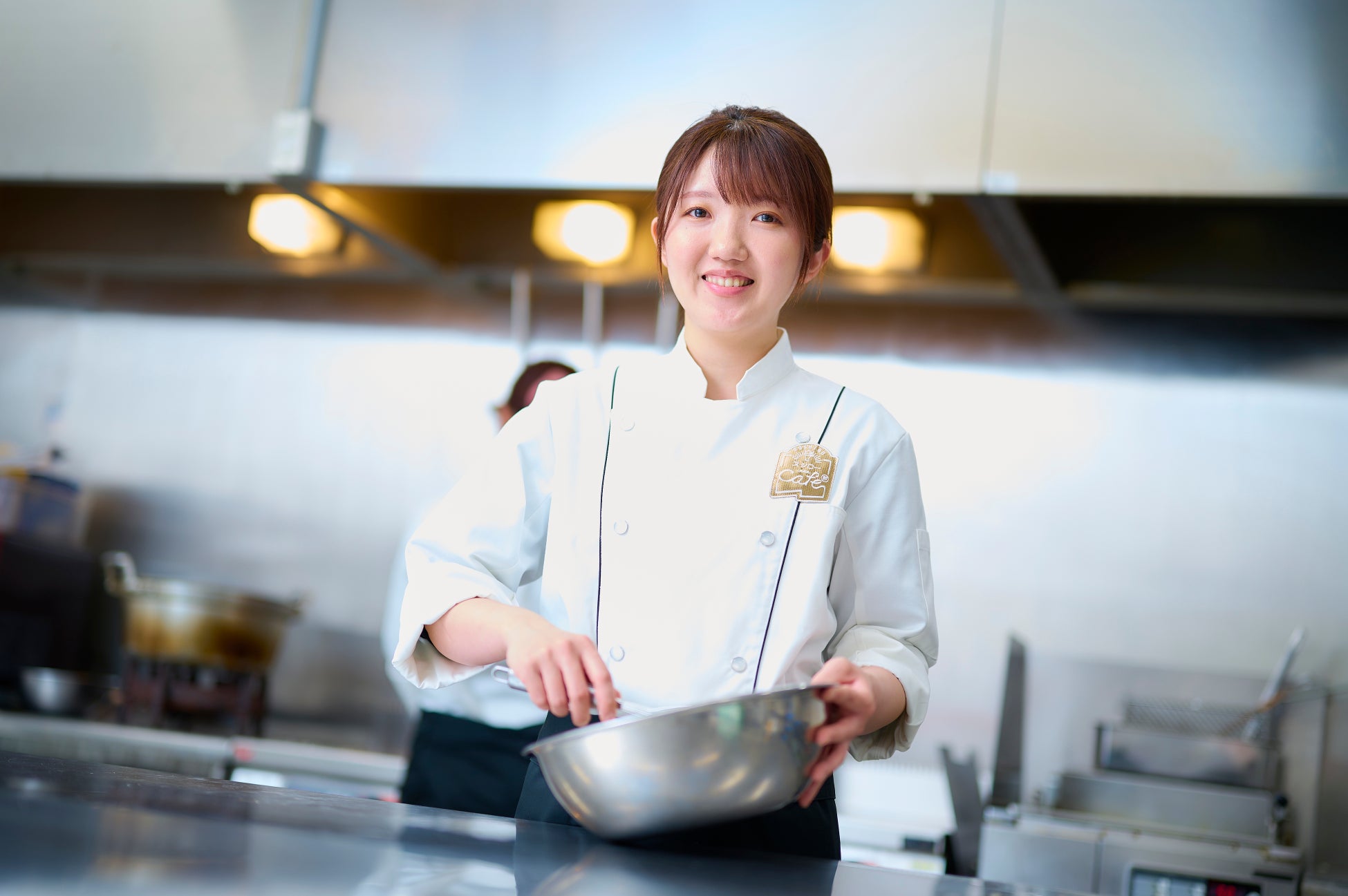 料理上手な母を見て育ち、パティシエを目指す。専門学校では、スイーツだけではなく、料理全般を学ぶため製菓科と調理科の両方を卒業し、調理師免許まで取得。卒業後は、カフェやフレンチのお店でスイーツの開発を担当し、新規オープンしたタルト専門店では、店長兼パティシエとして季節ごとに新作スイーツを考案。自らの商品をより多くの方に食べてもらいたいという思いからスシローへ入社。スシローカフェ部の新たな看板商品を生み出すことを目指して日々スイーツの開発を行っている。