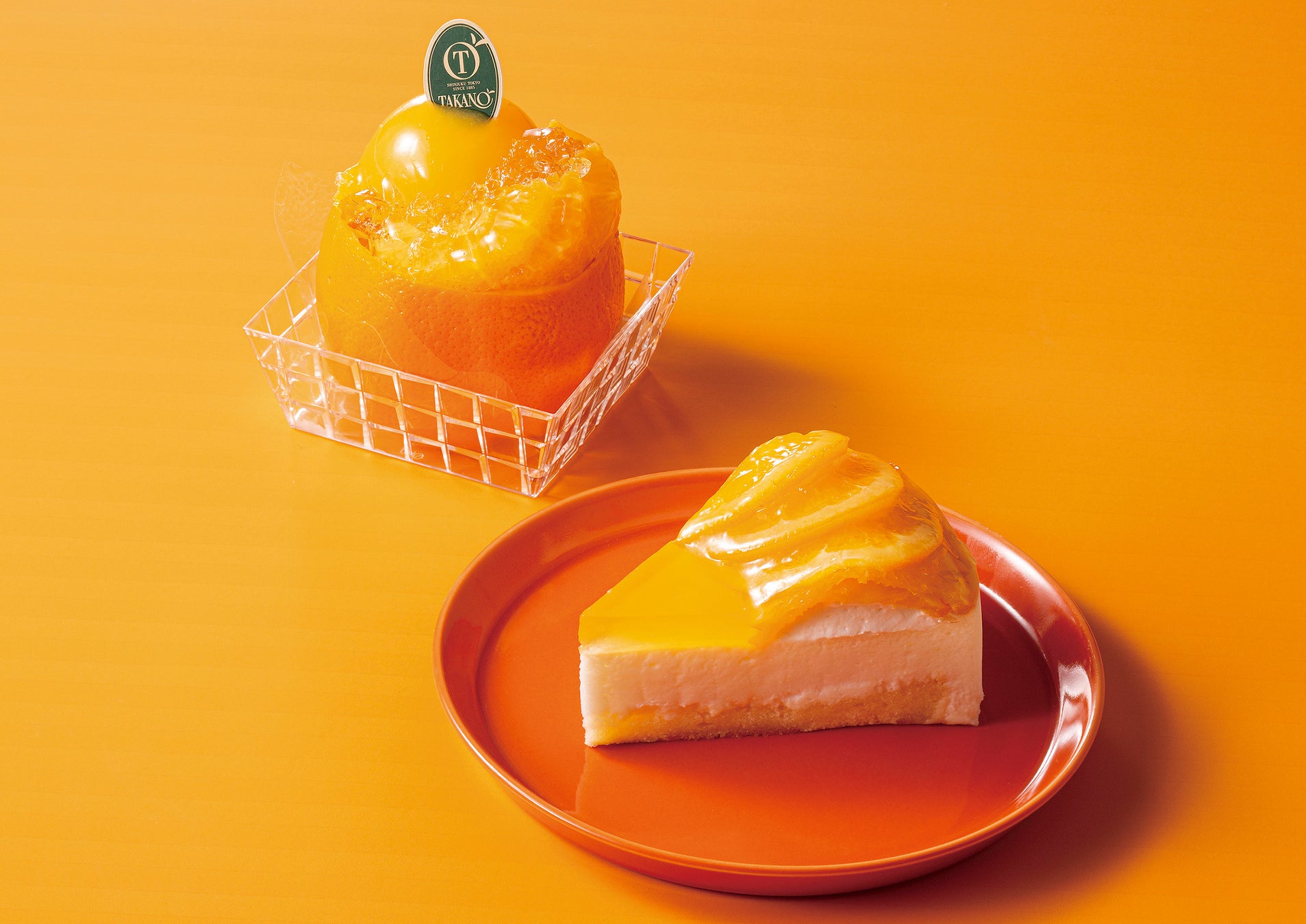 国産チーズを使用したプレーンタイプのチーズケーキにオレンジのシラップ漬けをトッピング。