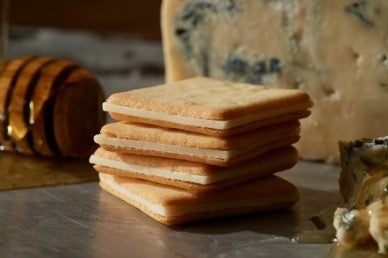 スペイン産ローズマリーの蜂蜜を練り込んだ生地で、濃厚なゴルゴンゾーラのチョコプレートをサンドしました。(チーズパウダー中ゴルゴンゾーラ60%以上使用)