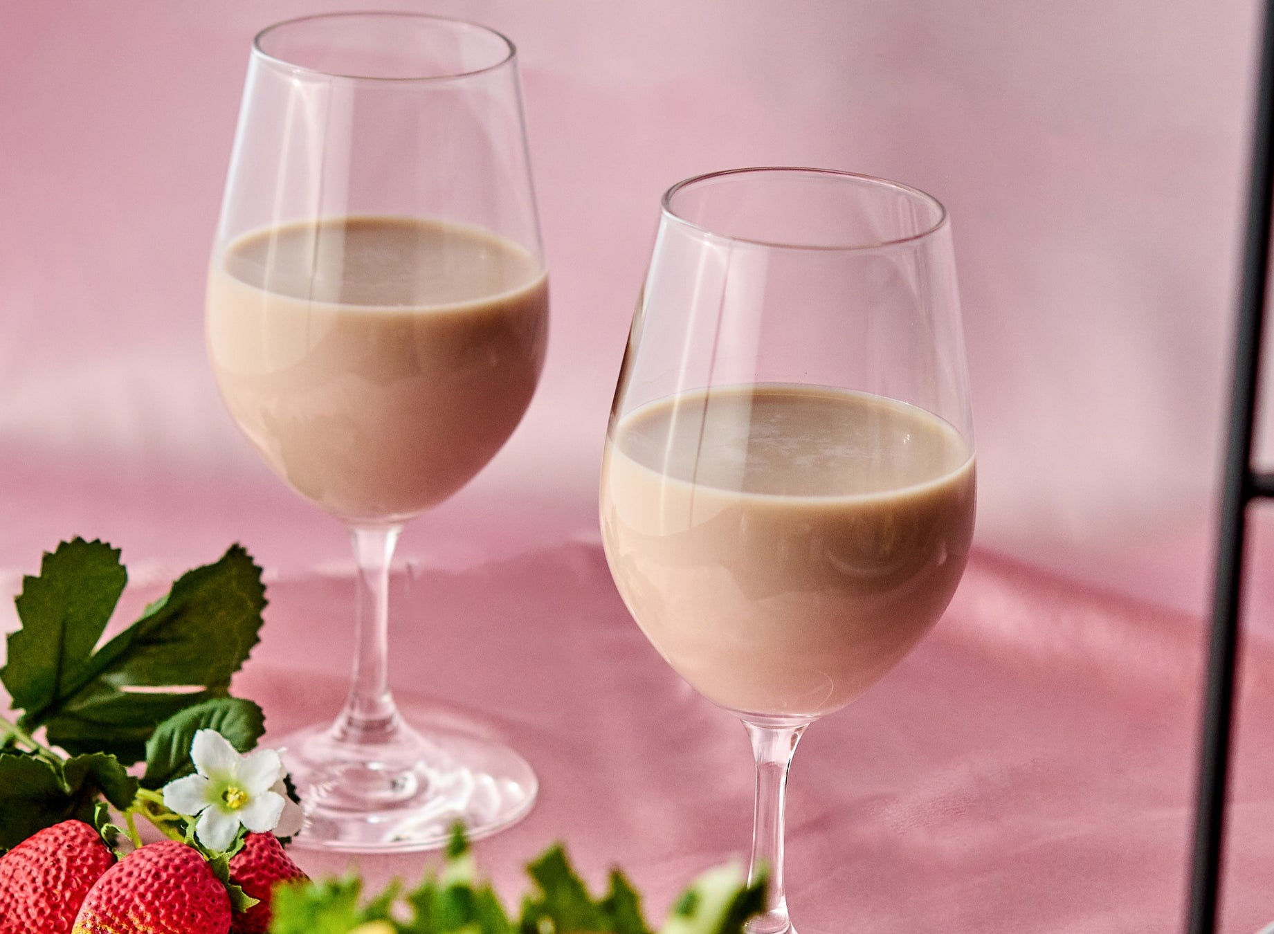 冷たいティーラテに、苺の甘みと風味を加えた1杯です。