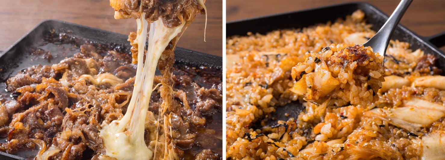 そして、お肉を余すことなく楽しめる追加メニューもあります。キムチ、海苔、バターの「シメセット」は、肉の旨味が溶け込んだ、たれが残る鍋にごはん、キムチ、海苔、バターを入れます。全体になじむほど混ぜ合わせ、スプーンでごはんを平たく広げて「おこげ」ができるまで焼くと「ポックンパ」の完成!さらに「チーズ」を加えると、コクうま焼飯に変身!お肉を少し残したり、コチュジャンやニンニクだれを追加すれば、さらに深い味わいを楽しめます。また、お肉にチーズを追加してタッカルビ風にするのも絶品です。自分好みの味を見つけてみてください。